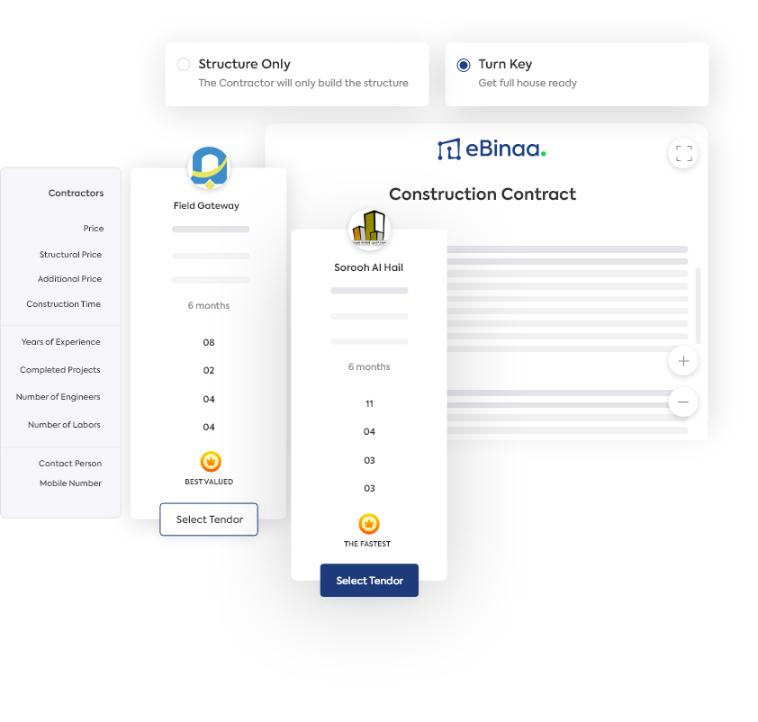 Reach out to the recommended parties, compare their prices and proposals, choose the best contract for your needs, and then sign the construction contract.